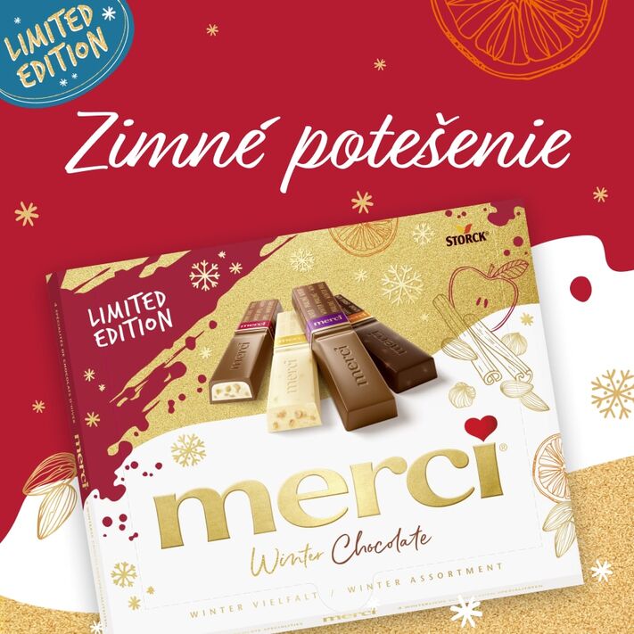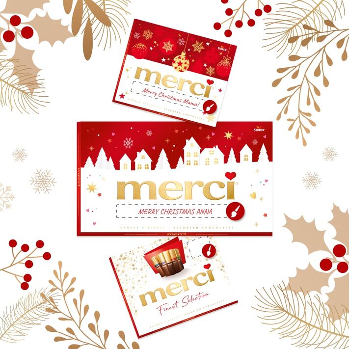 Najjemnejšia čokoláda, vyrobená z vybraných ingrediencií a jednotlivo balená v zlatej fólii: práve vďaka tomu je merci u zákazníkov také obľúbené, a to už od roku 1964. A niet sa čo diviť, pretože je to ideálny darček vyjadrujúci zvláštne poďakovanie. Ďakujem znamená merci – merci za to, že si.